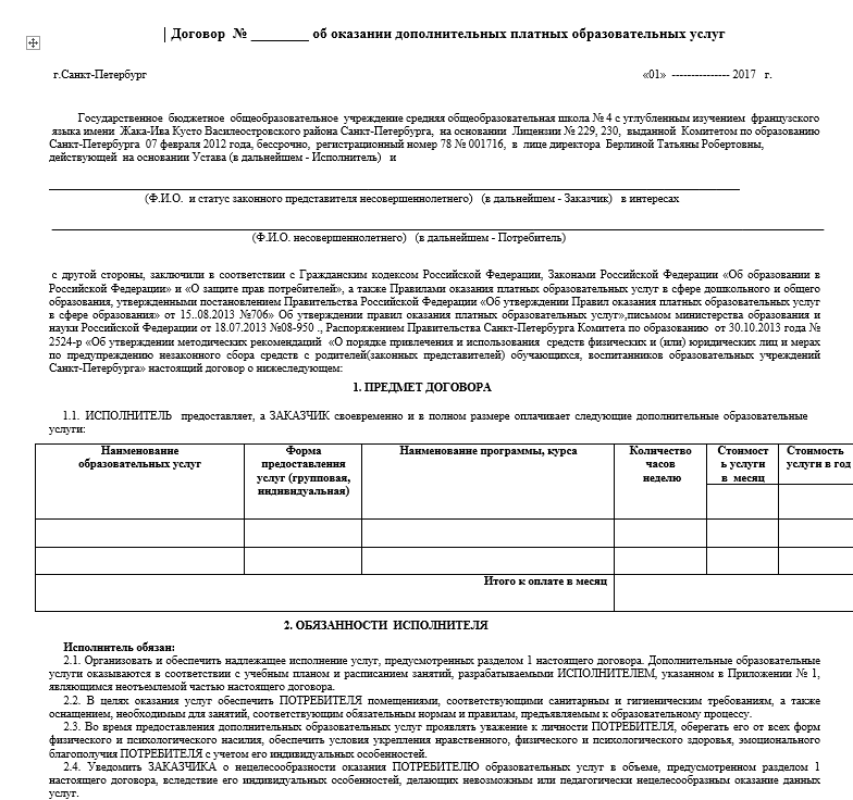 ОБРАЗЕЦ ДОГОВОРА НА ОКАЗАНИЕ ПЛАТНЫХ УСЛУГ (ЧАСТЬ 1)