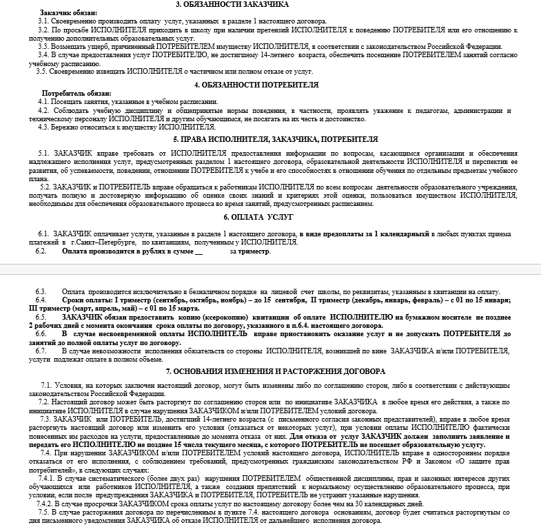 ОБРАЗЕЦ ДОГОВОРА НА ОКАЗАНИЕ ПЛАТНЫХ УСЛУГ (ЧАСТЬ 2)