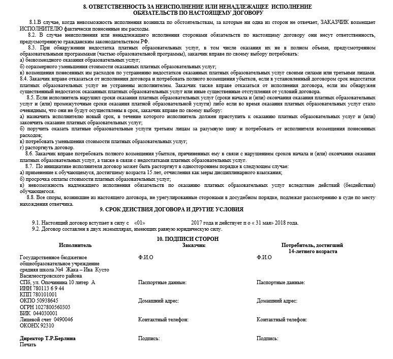 ОБРАЗЕЦ ДОГОВОРА НА ОКАЗАНИЕ ПЛАТНЫХ УСЛУГ (ЧАСТЬ 3)